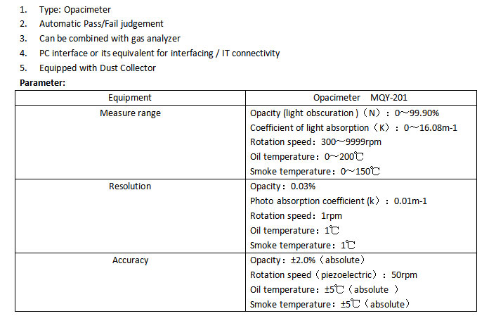 With adoption of advanced partial flow technology, measuring unit tests smoke emissions of diesel-powered vehicles directly. “Scavenge air curtain” technology prevents the optical system from being polluted.With constant temperature control in the sample cell, it can avoid condensation and influence of accuracy due to change of temperature